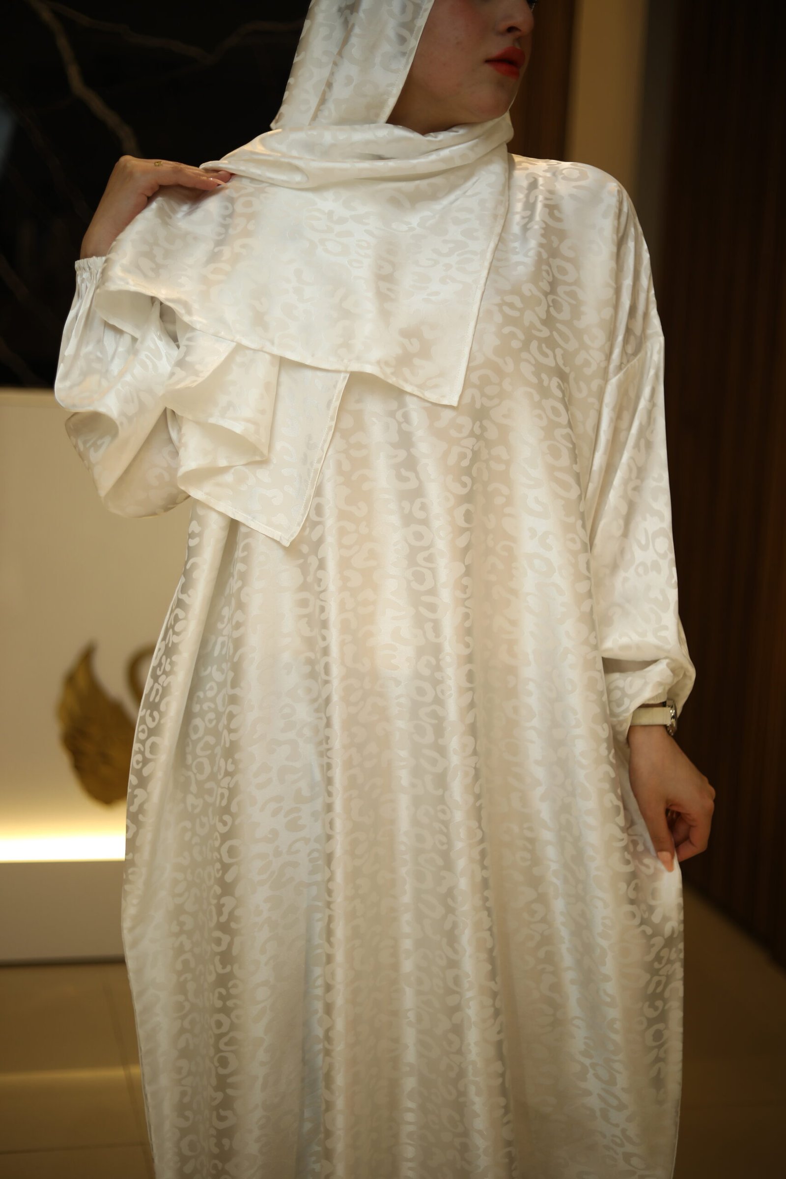 انطلقي بكل ثقة مع إسدال يجمع بين العملية والأناقة. صُنع من الستان المنقوش الفاخر بتصميم عصري يسمح لكِ بالانتقال من أداء الصلاة إلى الخروج واستقبال ضيوفكِ دون الحاجة لتغيير ملابسك. قطعة تمنحكِ الوقار بفضل طولها الساتر وتصميمها الذي يواكب الموضة، مع ملمس بارد يجعله اختيارك الأول في الأجواء الحارة.